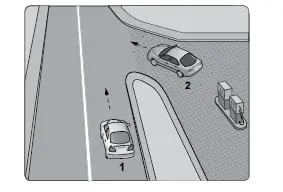 Şekilde gösterilen akaryakıt istasyonundan ana yola çıkmak isteyen 2 numaralı araç sürücüsü için aşağıdaki davranışlardan hangisi uygun olur?