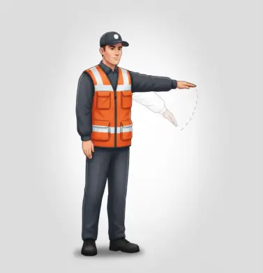Şekilde görülen trafik görevlisinin verdiği el işareti, sürücüler açısından hangi talimatı ifade eder?